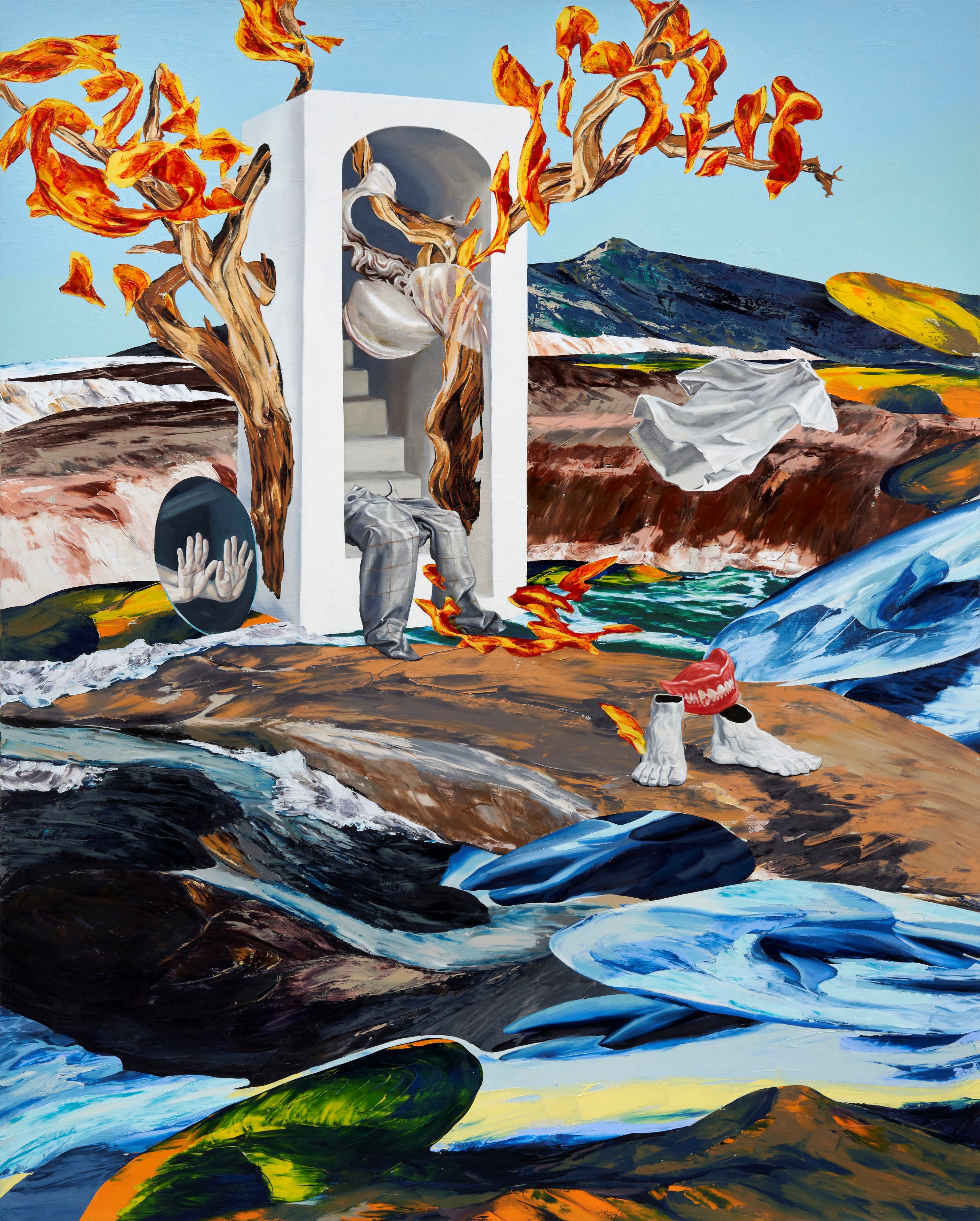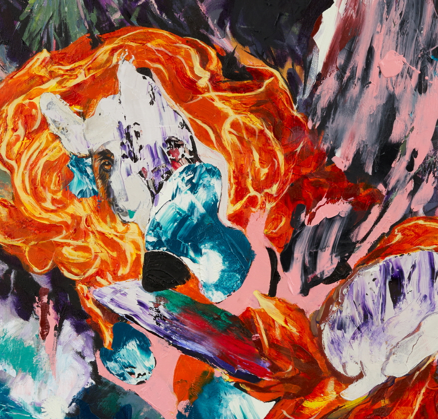 성모 마리아의 머리를 감싼 베일과 옆에서 삐져 나온 늑대 주둥이를 정중앙에 위치한 2023년 신작 〈Park's Land 27〉로부터 작가의 미적 실마리를 읽어본다. 시기 별 테마 연작을 발표한 그의 근래 연작 타이틀은 ‘Park’s Land’. 박정혁의 미적 세계, 박정혁의 미적 영역 정도로 의역해도 무리는 아닐 게다.