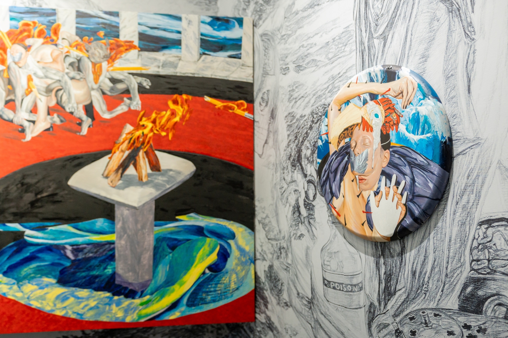 우리의 전시에서 ‘신화’는 현대사회에 만연한 디스토피아적 징후들을 감추는 코드로 은유 된다. 과거의 신화가 가진 서사는 다분히 계몽의 성격을 띠고 있었다. 반면에 인간 개개인의 사고를 몰수하여 획일화시키고 일방적으로 설정해 놓은 가치의 기준에 대중이 부합하도록 종용했다. 나아가 그들의 심리를 자극하기 위하여 의도적으로 카프카적인 야만성을 삽입시켰다. 대부분의 신화에서 절대자의 이미지를 과도하게 폭력적이고 이기적으로 묘사한 이유는 신화의 핵심이 ‘신’이 아니기 때문이다. 나는 이것을 당시의 집단이나 통치자의 편의에 의해 만들어진 일종의 정치적 도구였다고 본다.