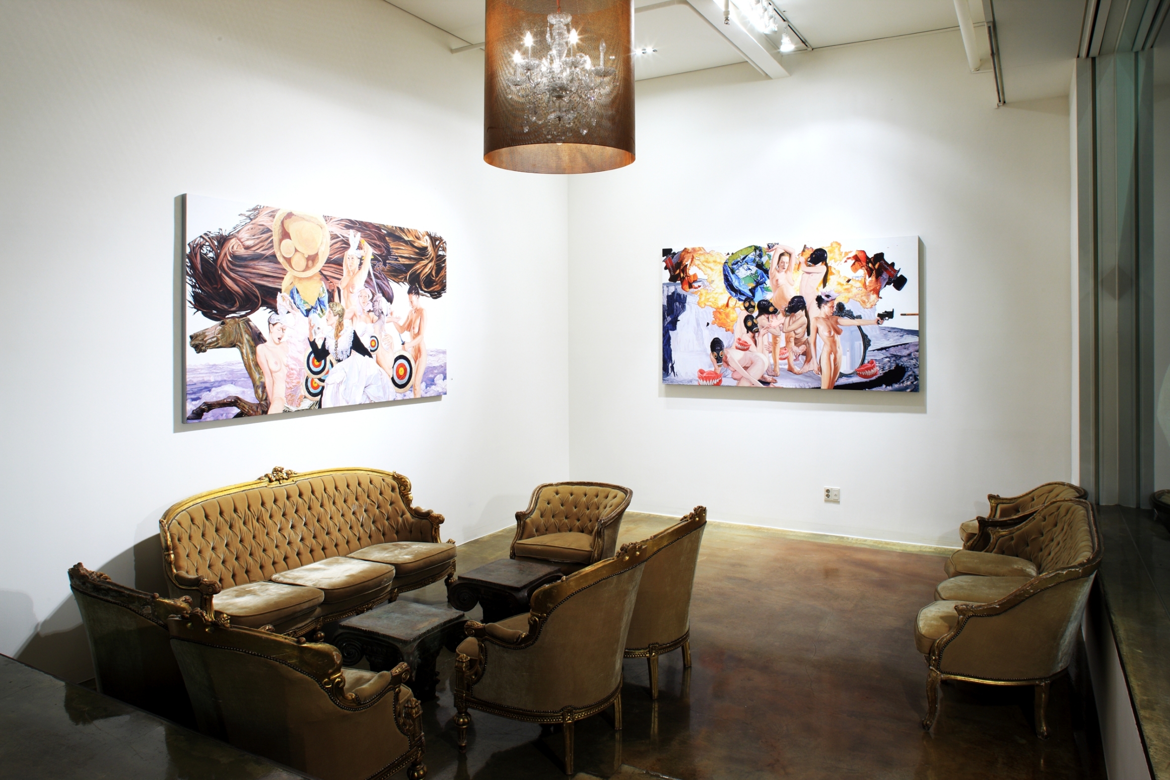 ● 옆에서 보면 모습이 사라지고 정면에서 바라보면 그제서야 희미하게 모습을 드러내는 조훈의 신작 회화작품. 관객은 은밀한 욕망의 시선에서 자유로워지는 대신 불안정한 형태를 완성하려는 욕망을 갖게 된다. 작품은 부조로 탄생한 여성의 반 누드 신체를 사진으로 찍고 이를 캔버스에 옮기고 그 위에 망점을 찍으면서 마무리된다. 무수한 망점은 여성의 노출된 몸매를 덮기 위한 가리개가 아니다. "모든 이미지는 망점에 지나지 않는다."라는 리히텐슈타인 말처럼 망점은 관객의 선입견으로 바라본 야한 이미지가 결국 작은 망점의 집합이라는 사실을 보여주는 장치이다.